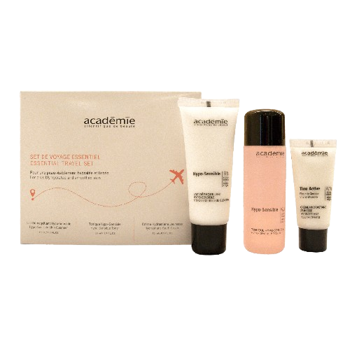lækkert Rejse/Weekend sæt fra Academie hudpleje, indeholder rens, toner og en dag/nat creme.
